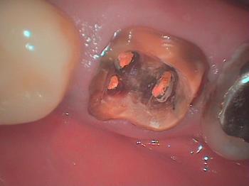 大臼歯に痛みがありメタルコアを除去します