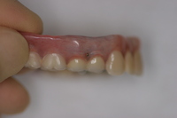 さらにこの写真の義歯はコーヌスという維持装置を使うため、バネ(クラスプ)がありません。