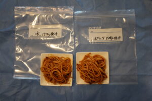 ミートソースのパスタで簡単な実験をしてみました。